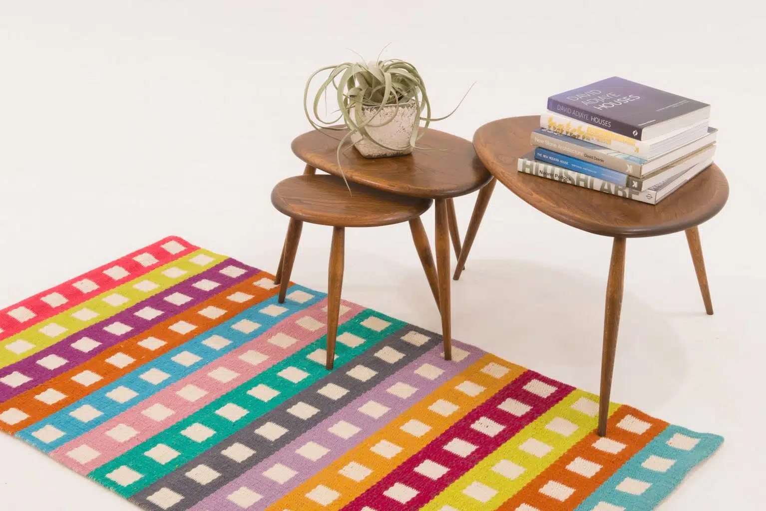 Angie Parker is an award winning designer and a weaver of some of the most visually striking and beautifully crafted rugs which are made in the UK. Her distinctive and intricate floor art and fabric creations are hand-woven using long established patterns, such as Krokbragd, which she combines with her instinctive and daring approach to colour. It is the creative process of importing a contemporary element to the time honoured techniques of rug weaving and the responses from the viewer which most excite her.