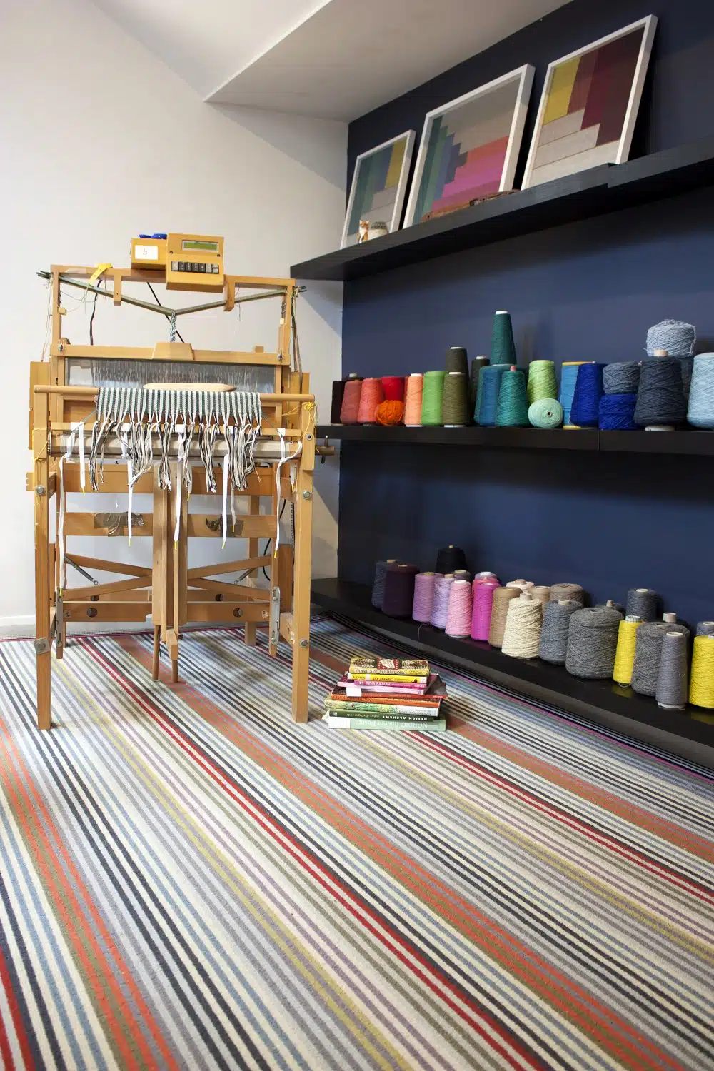 M.S: I have a lovely open plan studio in Whitstable. There are 8 of us including me and I’m lucky to have a very special team (all women) who help me to keep the studio running smoothly. We are surrounded by looms, yarns, books, archive textiles and development work. It’s a lovely place to work and I always feel happy going into the studio.