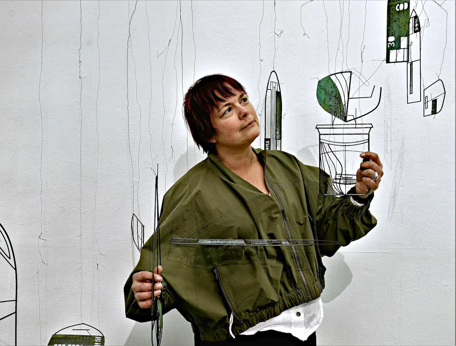 Sustainability, of course, is a swelling preoccupation for our member. And the generous space allowed the emotive telling of some truly poignant stories. Here was Jacky Oliver with Catch, carefully adjusting her many hand-cut, etched and pierced metal “boats” suspended on fine wires. They are a protest against the intensive fishing of our oceans. Her work is informed by extensive research. “We are simply taking too much fish out of the sea,” she said, re-positioning another piece. “This is either a labour of love or insanity,” she added cheerfully – “but I do like to tell stories.”