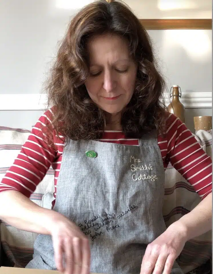 Lockdown for all of us was about finding workarounds. The Artists of Navenby group had been invited to create work inspired by the Cottage as it emerged from its wrapping of scaffolding and plastic. We created a photograph resource pack to circulate to members instead. Offering workshops was more of a challenge, and we bravely went digital. Creating You Tube videos and downloadable worksheets I invited people to have a go at making a paper booklet out of a sheet of paper, try darning (using a plastic bottle) and create a patchwork cushion. All from resources you could find in your home. Although there is nothing better than experiencing a creative workshop in person, the upside is that a digital version lasts for (almost) ever! And you can still find me on my sofa, in my Mrs Smith’s pinny, here.