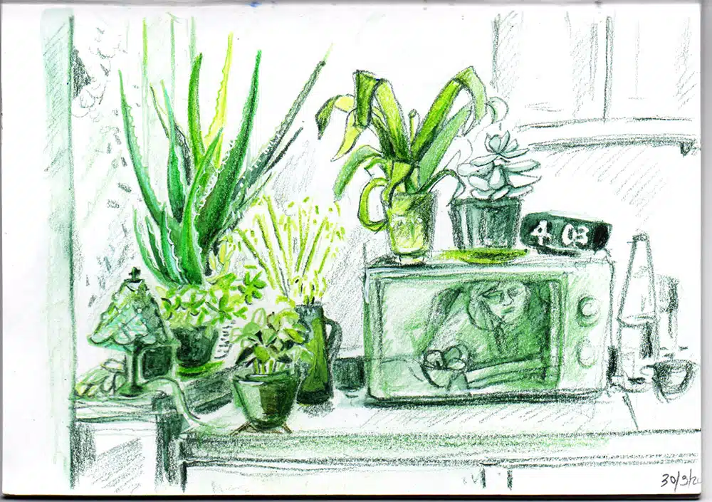 MG: From Cornwall to Scotland the neighbourhood project is growing. I’m currently working on requests to capture other homes and draw moments of lockdown for folk up and down the country.