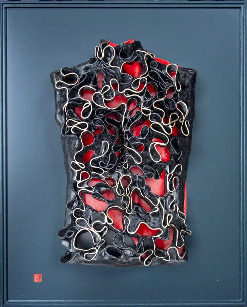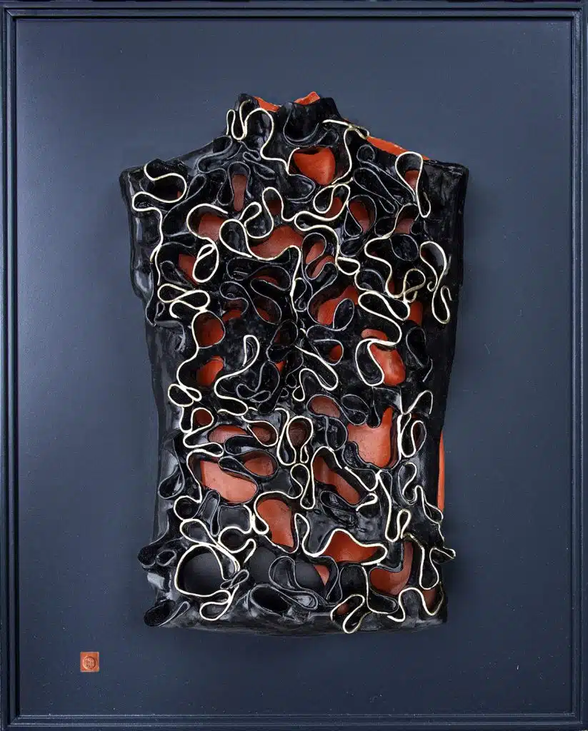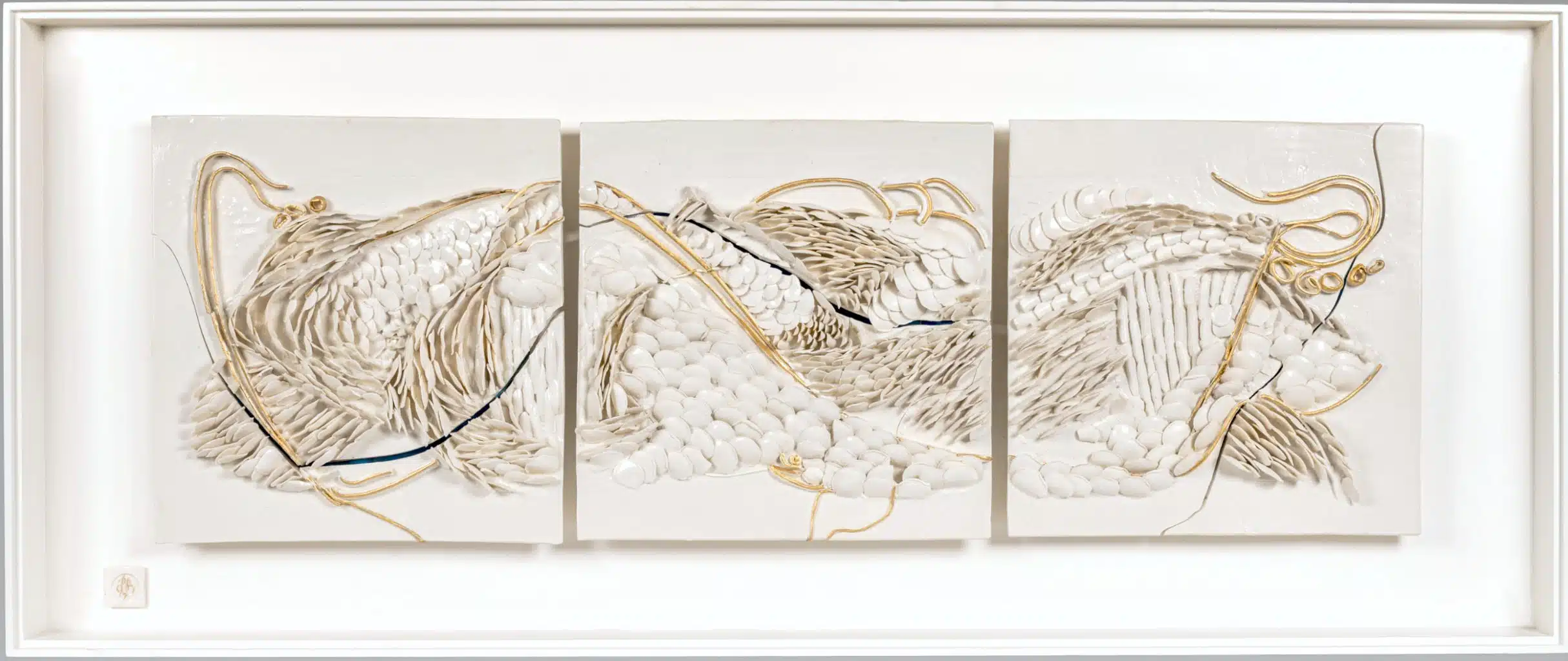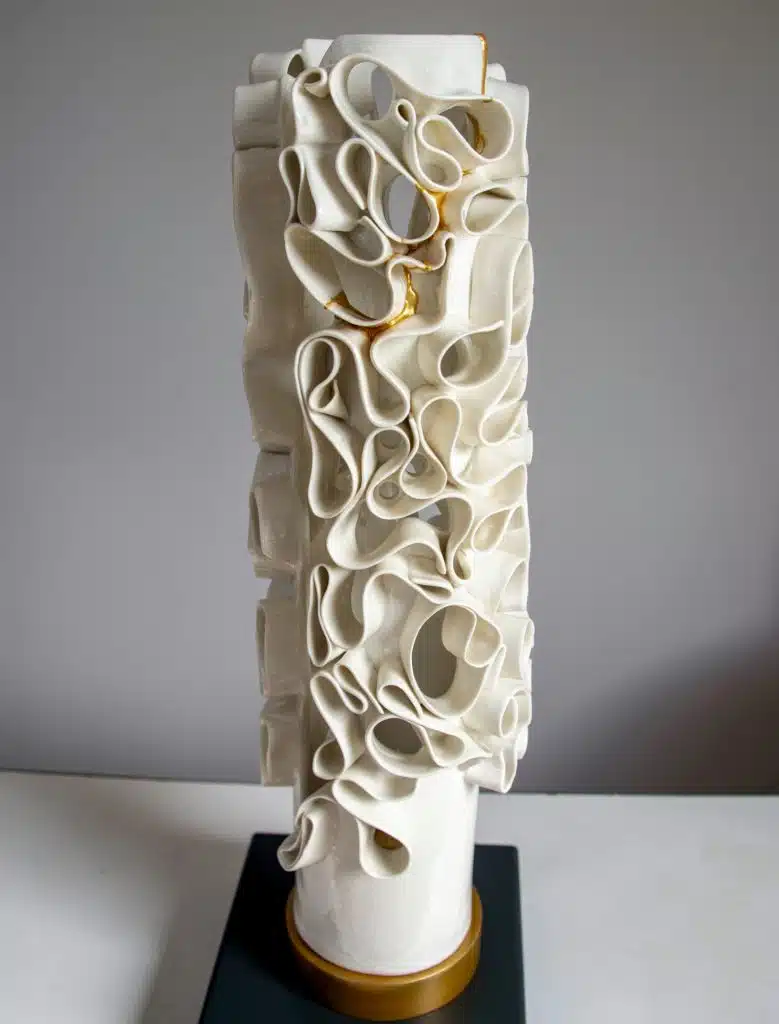 Her work captures movement, flow, and energy through figurative and abstract wall pieces and sculptures. Working with porcelain, she explores the interplay of shapes, textures, and space, emphasising contrasts between smooth and rough, inside and outside, visible and hidden. These qualities reflect coexistence and the dualities inherent in human nature and the natural world.