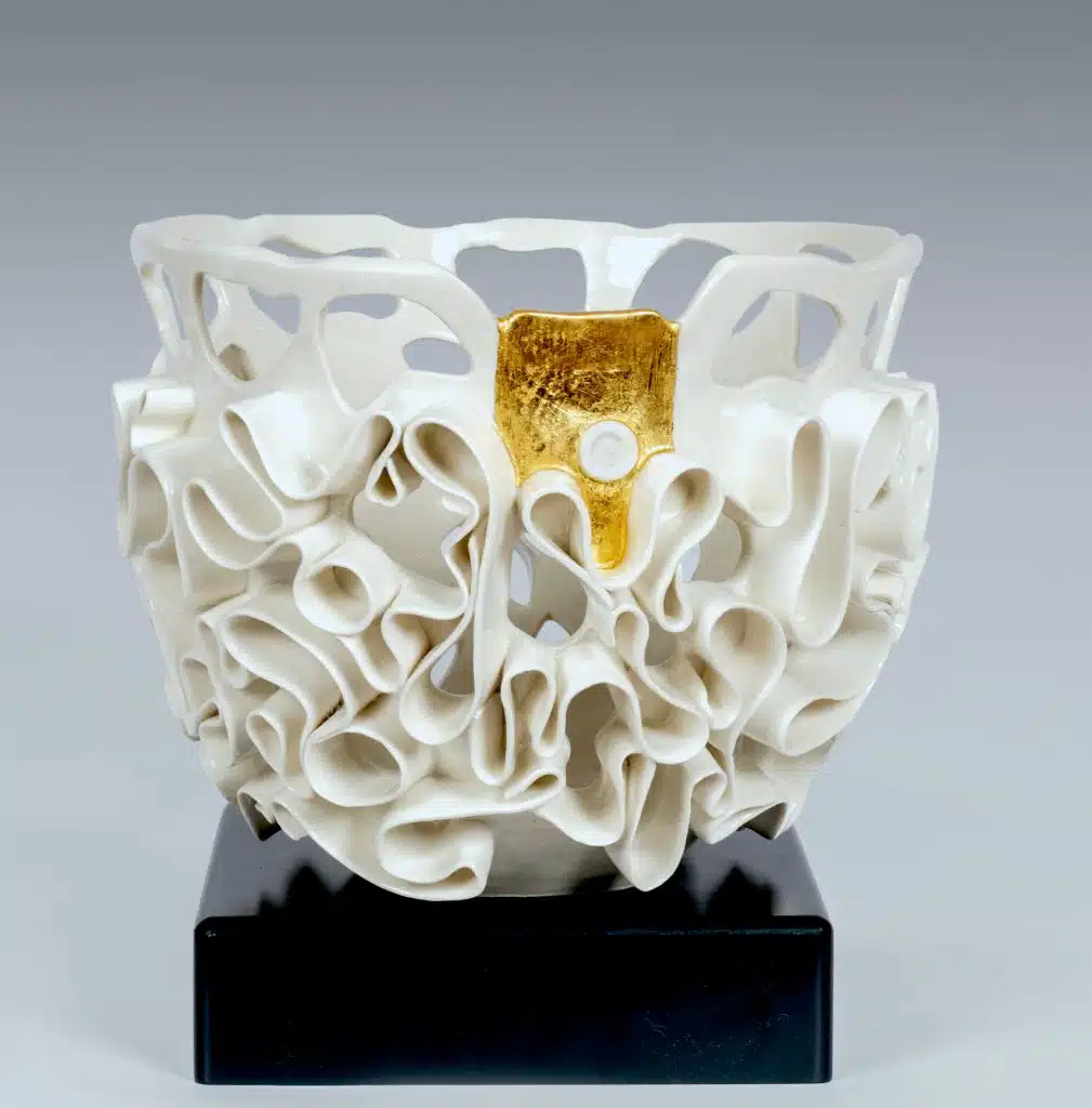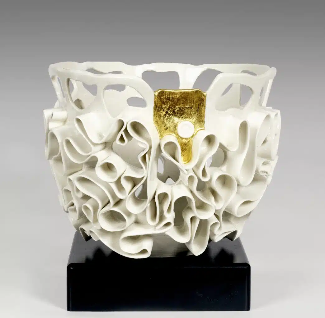 Porcelain has been her primary medium for the past sixteen years, a material she discovered during her degree studies in London and Norway. Its fragility and resilience perfectly embody the contrasts she seeks to express.