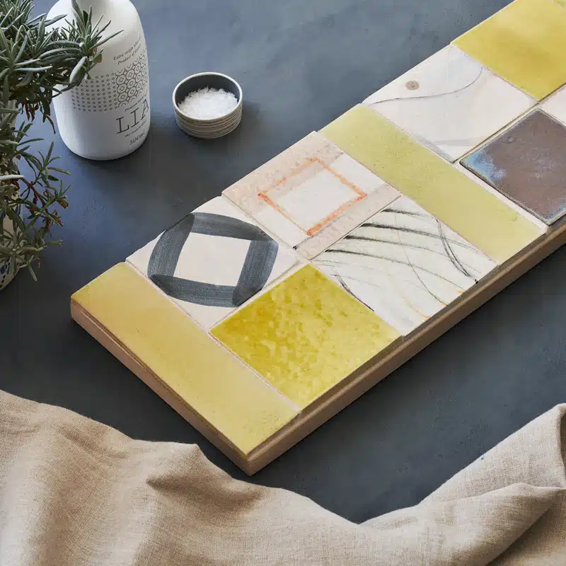 The final arranging process takes time. Caroline says, “I look for balance and I look again. Because tiles are fixed on the wall and should be enjoyed for many years, they cannot be dominated by fashion. However, colour and pattern are strong at the moment and I’m certainly enjoying that trend.”