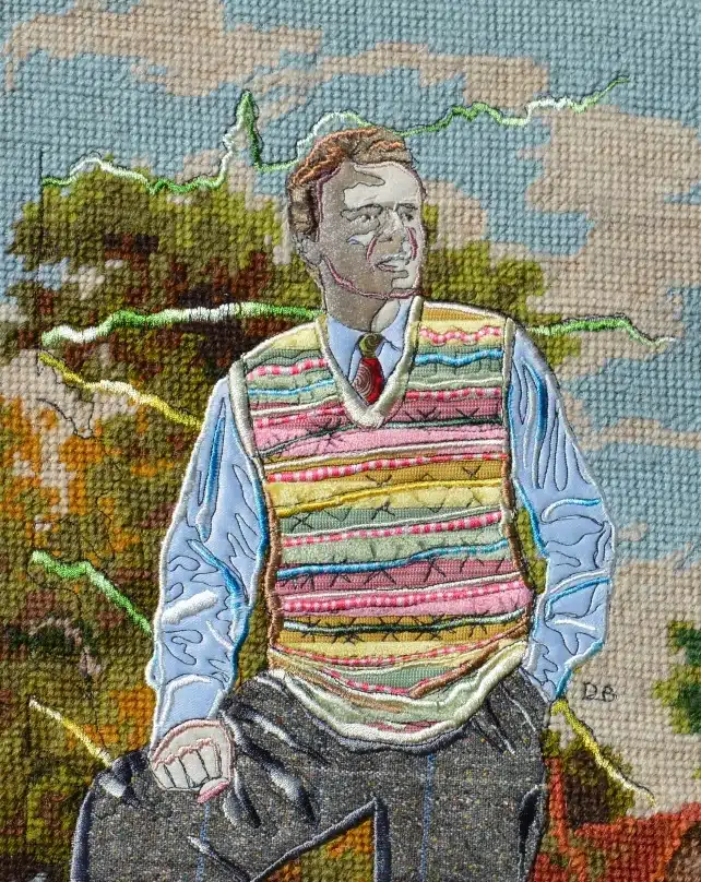Darren Ball’s work is a celebration of the many visual, textural and expressive qualities present in fabrics and threads. He focuses on mark making and the surfaces that can be explored through applique and free machine embroidery. Darren uses vintage and found materials that he’s collected over many years. This imbues uniqueness and a ‘slowness’ of handmade production to each piece.