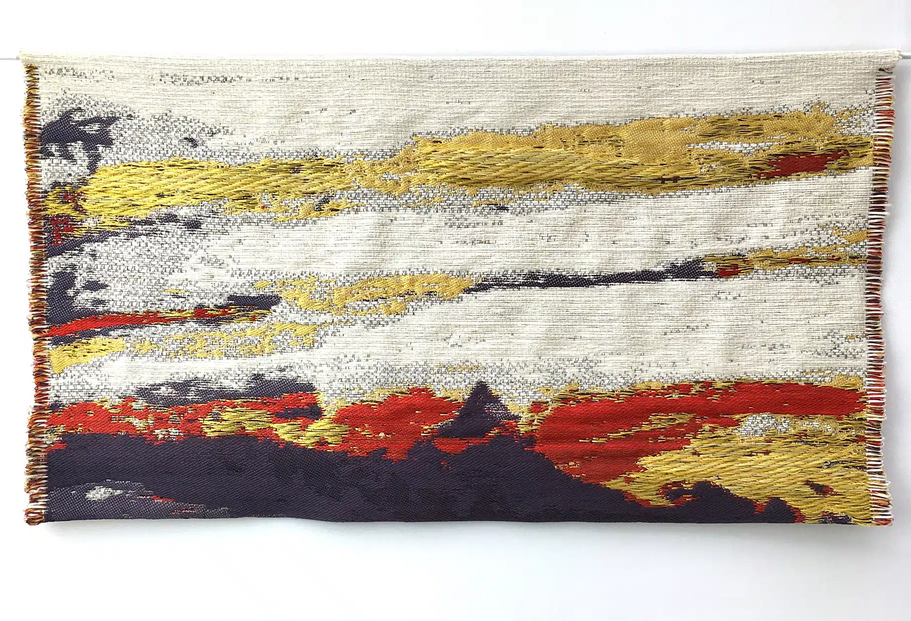 Fiona Sperryn is a designer-maker who transforms her original drawings into unique tapestry-style artwork, which is skillfully hand-woven on a digital jacquard loom. She enjoys a hands-on approach throughout the creative process, from textural mark-making outdoors to hand finishing the woven cloth in her studio in Cornwall.