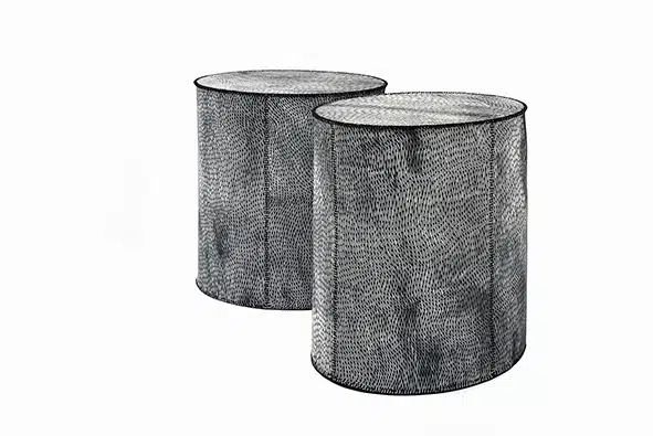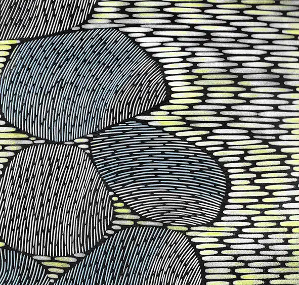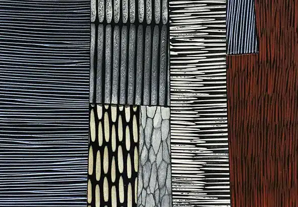 Janine loves the freedom of working instinctively, each mark responding to the presence of what has come before. The majority of her work is wall-based art works, but she has also created furniture, vessels and jewellery showing the versatility of her technique.