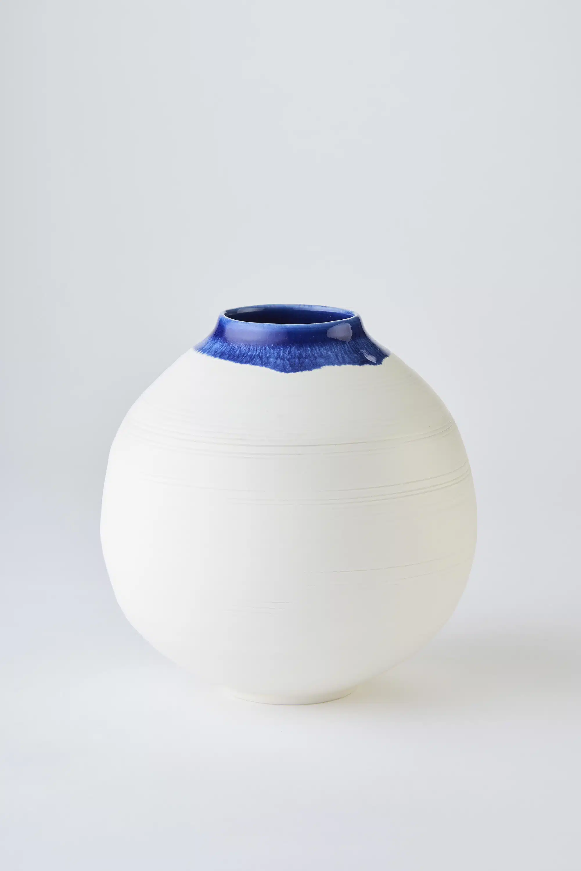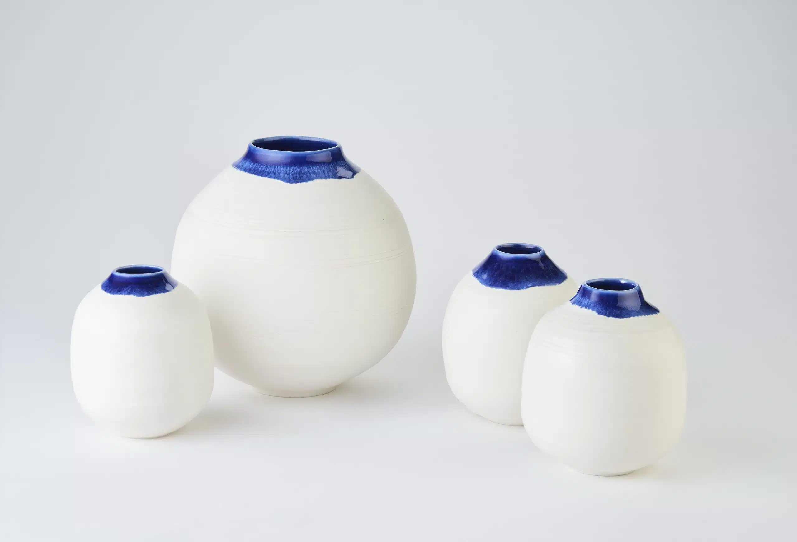 Kirsty’s Icelandic collection celebrates the otherworldliness of the unique landscape of Iceland through layered and dipped copper green and cobalt blue glazes, whilst celebrating the purity of the Korean moon jar form through a combination of porcelain and black stoneware clays.