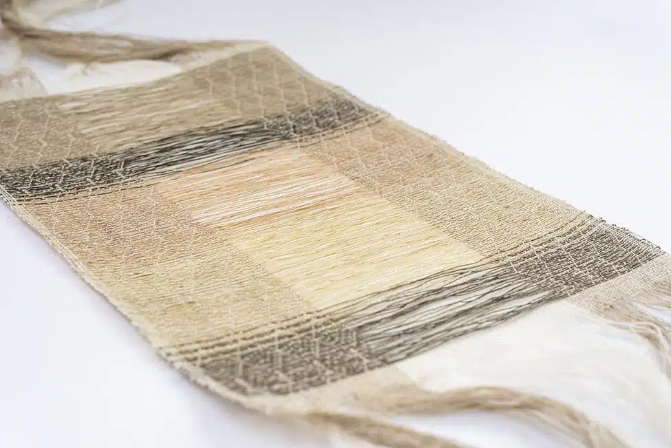 Conscious of the volume of waste sent to landfill each year and the need to value our natural resources, Lizzie explores responsible textiles and circular design. She works with natural materials, often those that are locally found or re-purposed from other design processes. From the outset of each project, she considers the life cycle of materials to create work that can be reclaimed or will biodegrade after use. Lizzie says, “