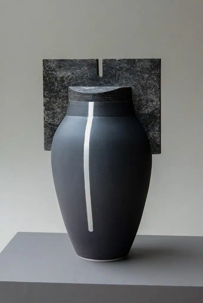 Steve is inspired by modernist & brutalist architecture, heavy industry, and the emphatic statement of a progressive, iconoclastic and utopian future that these represent. He frequently combines ceramics with other materials such as wood, metal and plastic; matter that can be worked in different ways, often with more detailed precision than ceramics allow. Steve aims to create distinctly modern, thoughtful, minimal and refined pieces, imbued with innovation, and that respect and attempt to progress traditional techniques and forms.