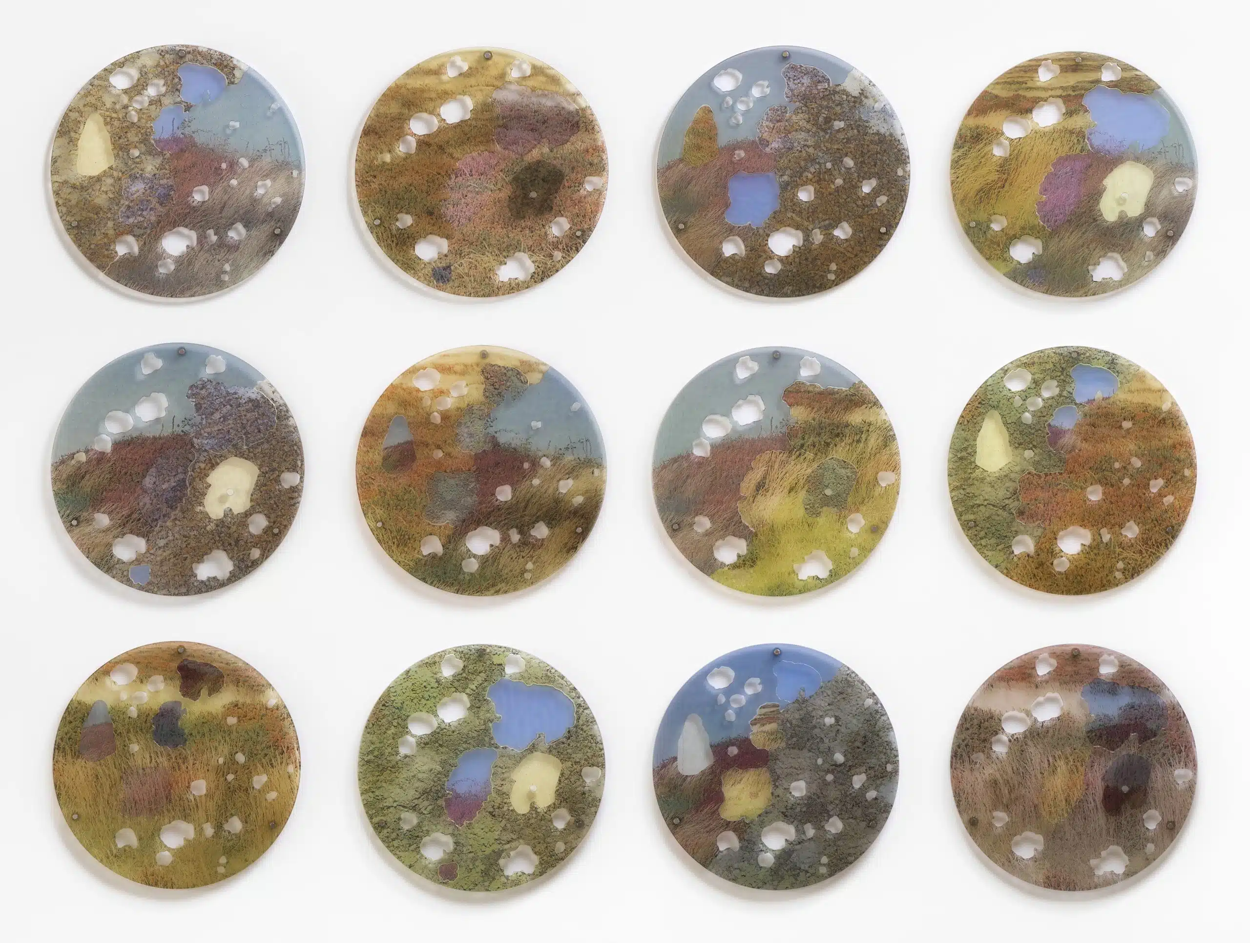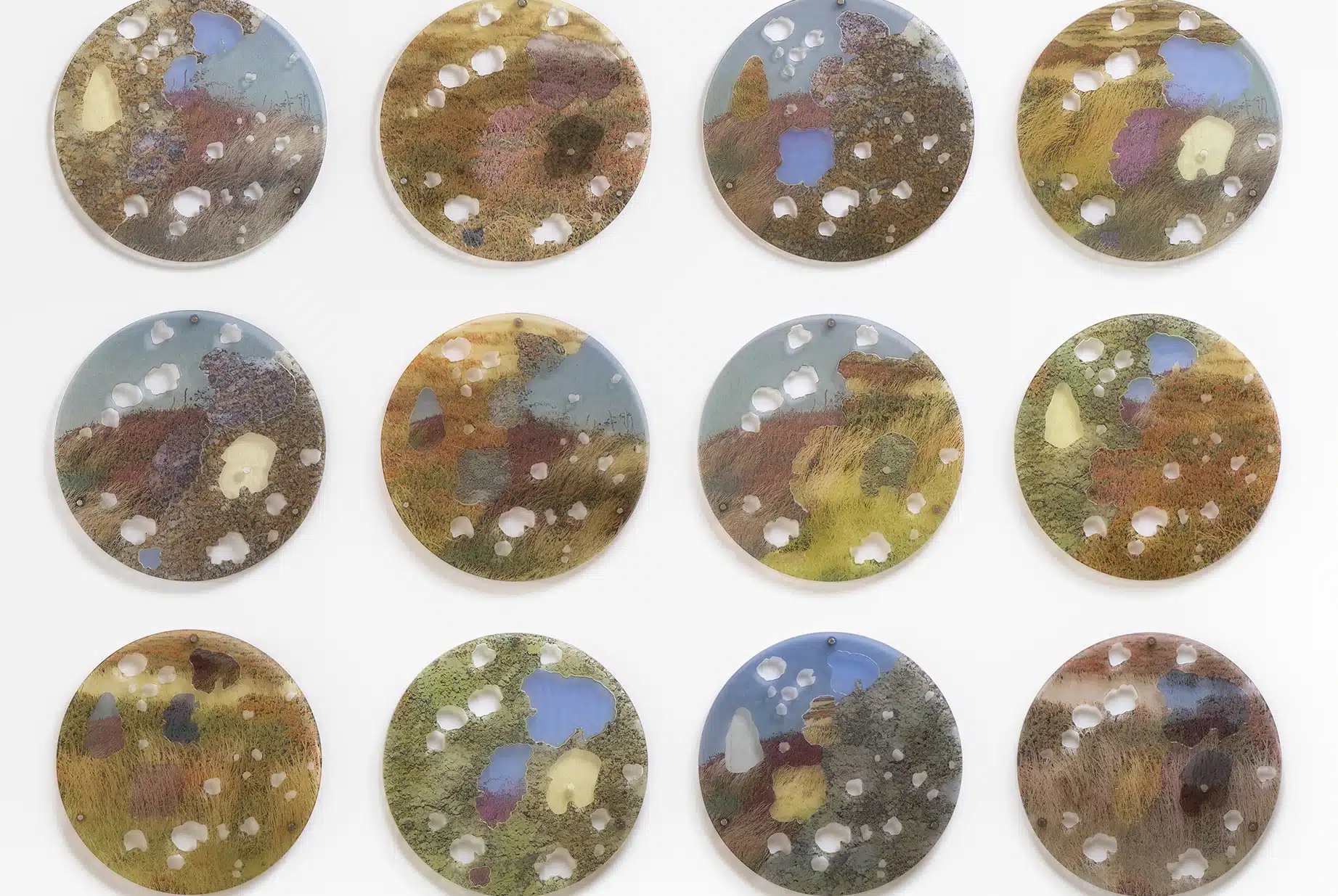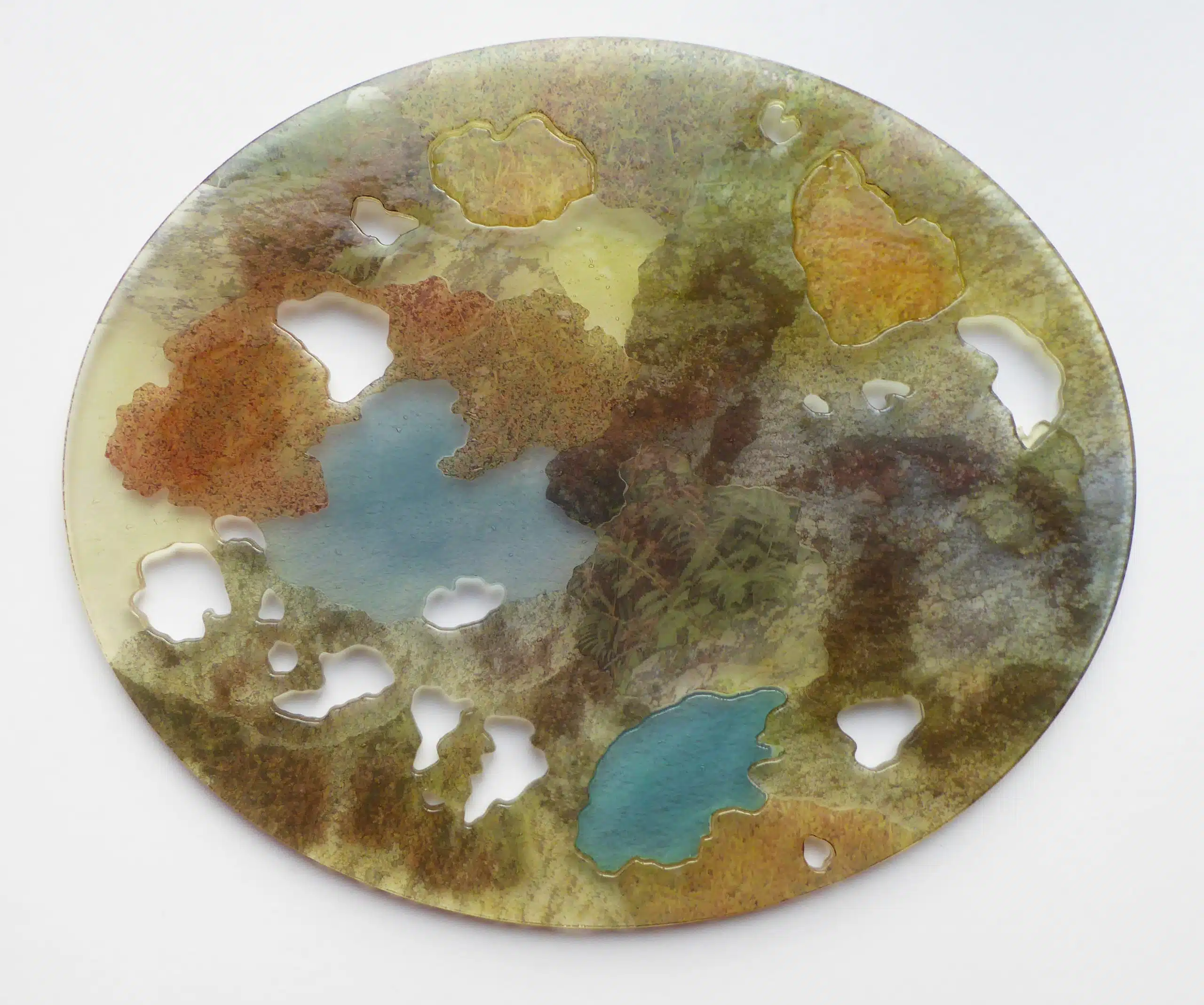 Susan researches and responds to remote archaeological sites, often at the coastal boundaries of the UK. Through walking, photography and drawing she immerses herself in particular places, combining different viewpoints with overview, context, and macro and micro elements. This visual information then evolves into drawings for waterjet and laser cut glass and Japanese papers, and printed and fired layered imagery. Susan is influenced by, and works with museum collections, and has actively been involved in collaborative research projects into the Bronze Age with academic partners.